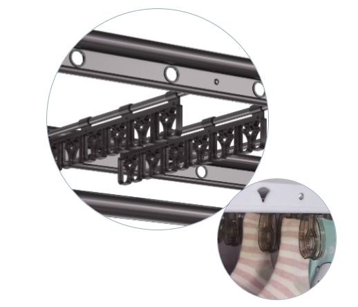 配置的24个专属母婴夹,能多晾24件宝宝的衣服,很好地满足宝宝的衣物晾晒需求,抬手就可快速晾好小件衣物,十分减负,就算是“家里只会玩游戏的大猪蹄子”来晾宝宝的衣服,也不会被晾的奇形怪状啦。