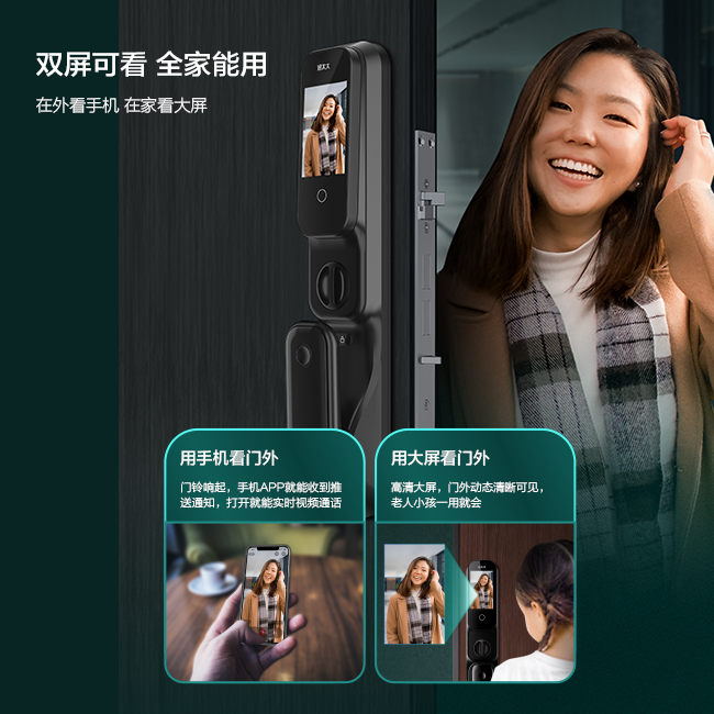 相当于装了一个随时可打开的直播监控画面,使用手机可查看锁前的实时画面,随时远程监察门外的一举一动。